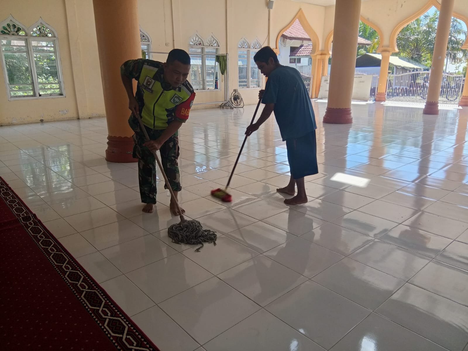 Babinsa Posramil 06 Bubon Bergotong royong Membersihkan Tempat Ibadah