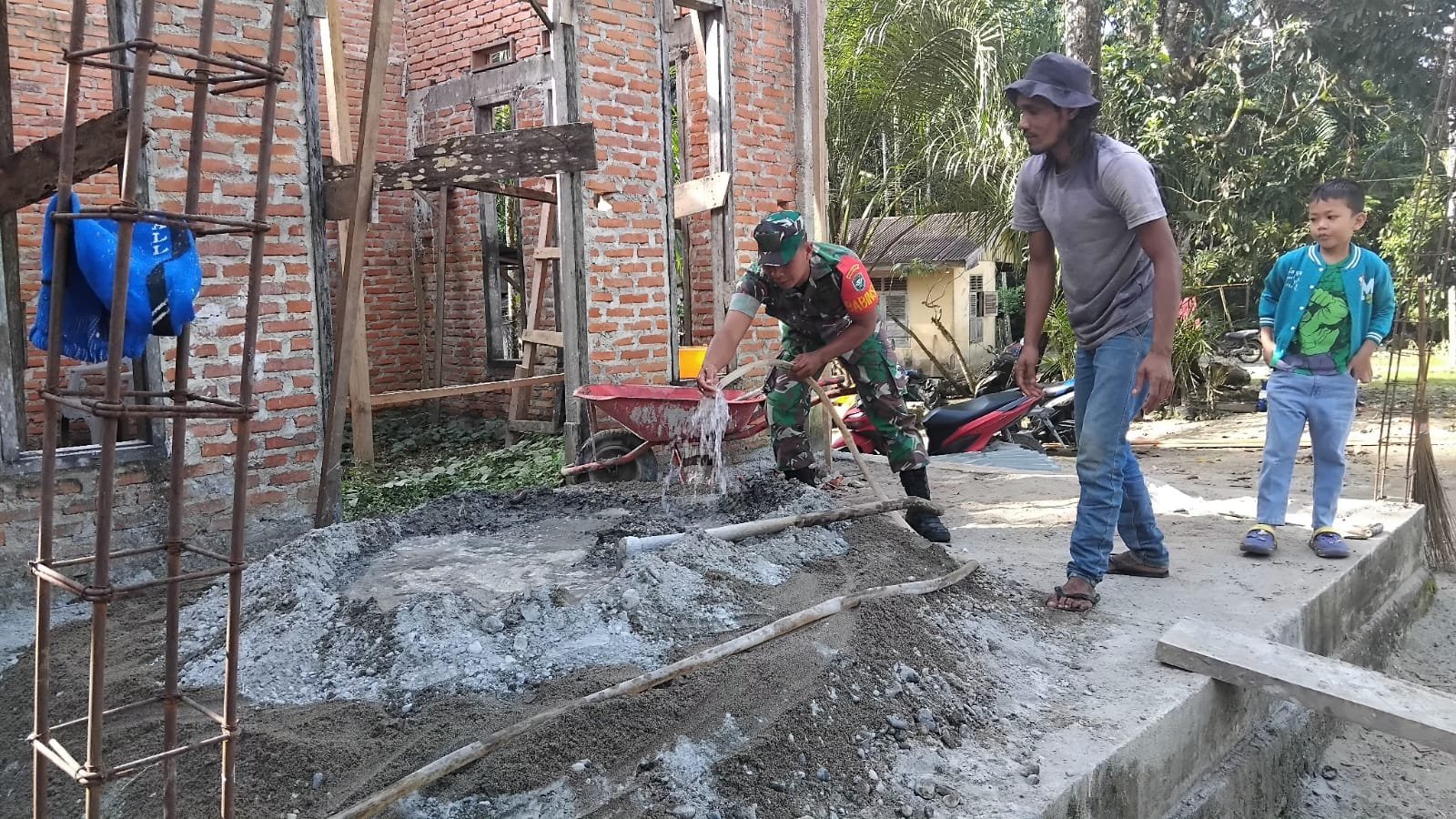 Kegiatan karya bakti tersebut dilakukan dengan mengaduk semen untuk pengecoran sloof atas rumah milik warga. Kehadiran Babinsa di lokasi pembangunan menjadi bentuk kepedulian TNI terhadap kesulitan masyarakat di wilayah binaan.