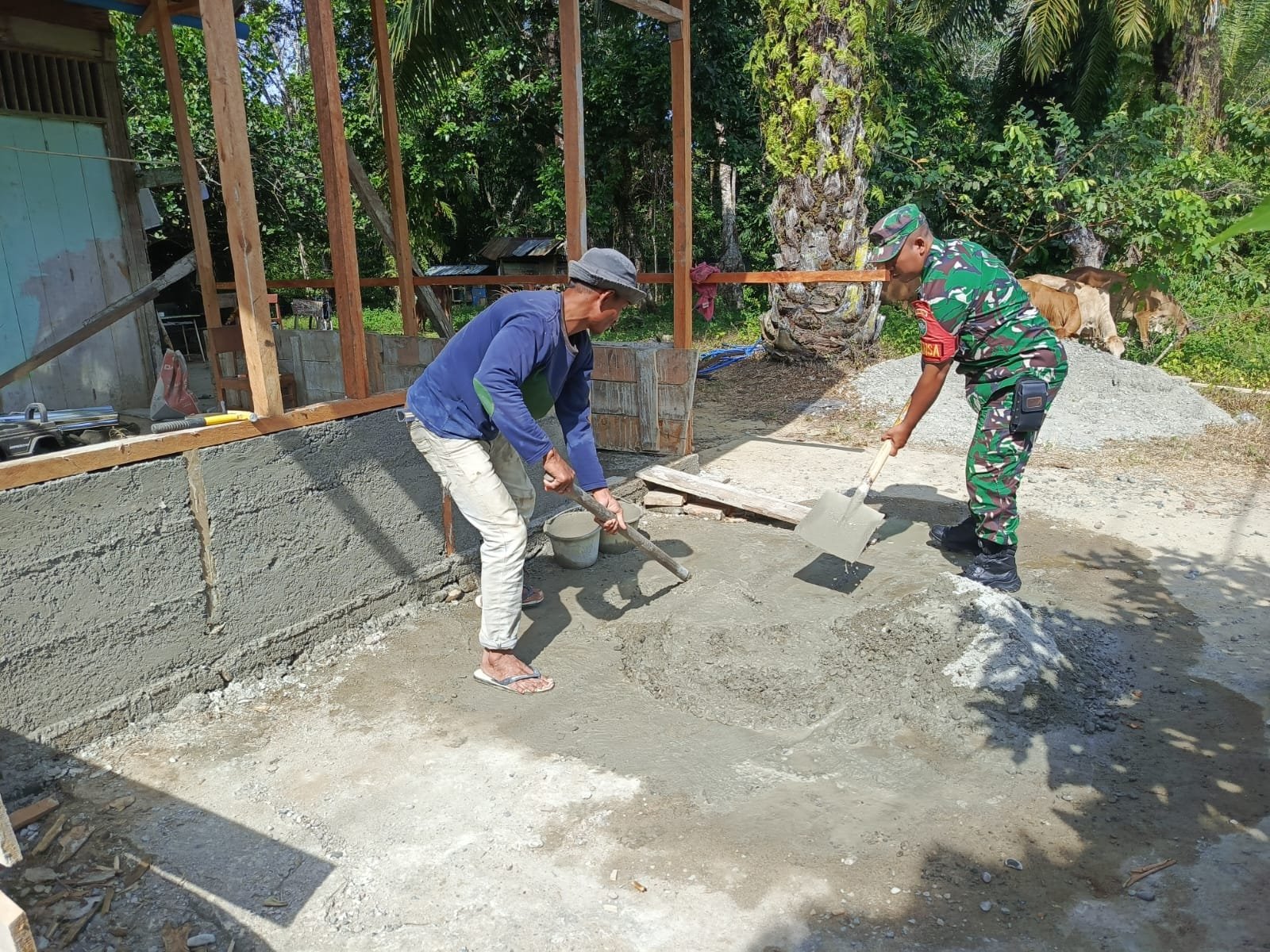 Babinsa Posramil Pasie Raya Bantu Warga Cor Dinding Kios di Desa Tuwie Kareung