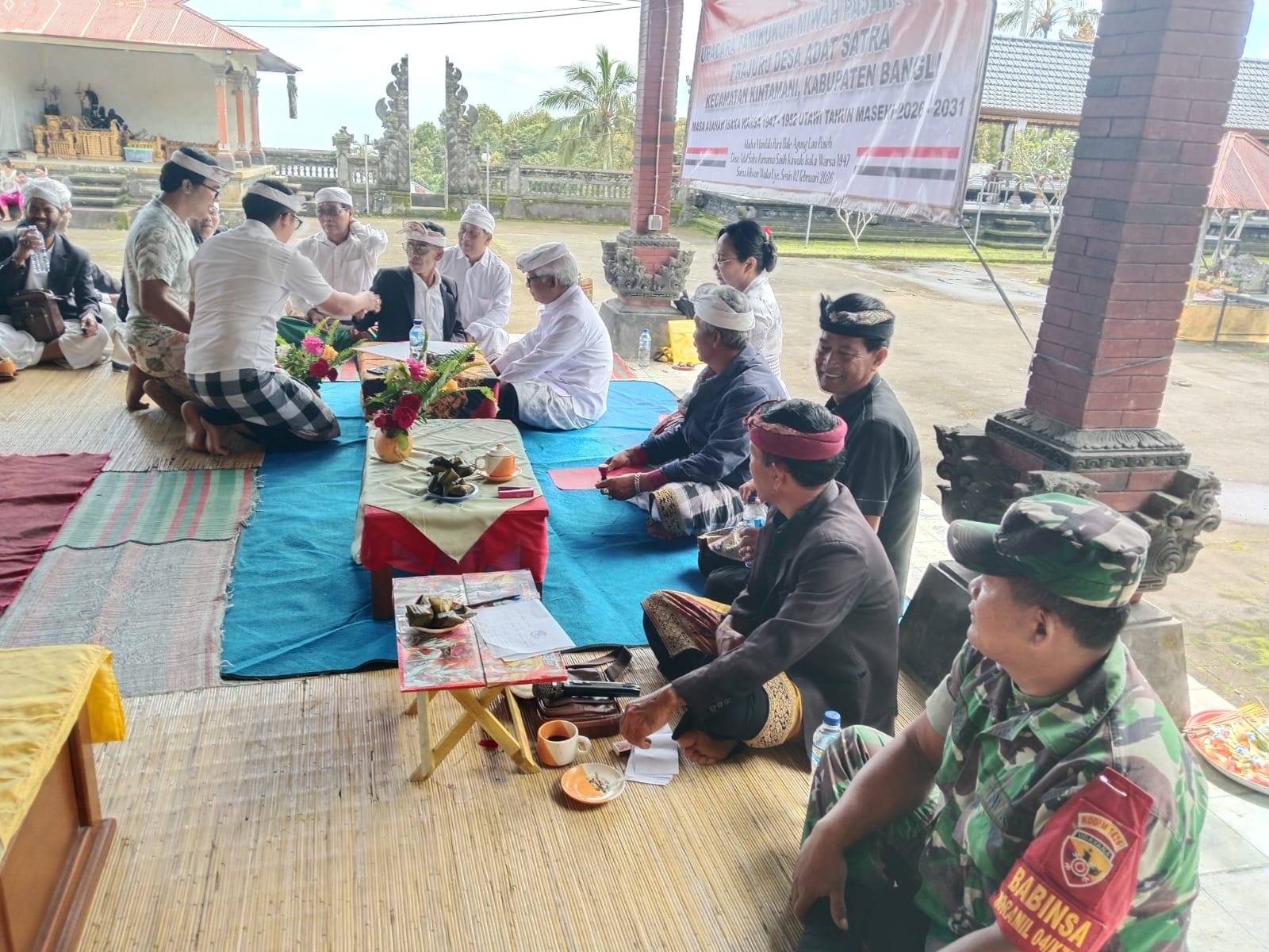 Kintamani, Bangli – Pada Senin, 2 Februari 2026, Sertu I Wayan Pasbudi, Babinsa Desa Satra dari Koramil 1626-04/Kintamani, menghadiri Upacara Pamikukuh Miwah Pajaya Jayaan Bendesa Adat di Pura Bale Agung Desa Satra. Acara ini dimulai sekitar pukul 10.00 WITA dan berlangsung dengan lancar hingga selesai. Upacara tersebut merupakan momen penting untuk melantik I Made Sukarata sebagai Bendesa Adat yang baru, yang bertujuan untuk mengesahkan kepemimpinannya dalam menjalankan tugas dan tanggung jawabnya di desa.