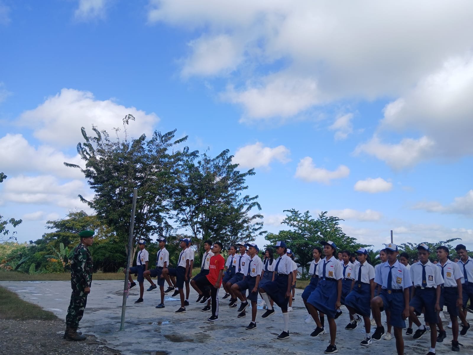 SUMBA BARAT – Dalam rangka membentuk karakter dan kedisiplinan generasi muda, Babinsa Koramil 02/Walakaka Kodim 1613/Sumba Barat, Sertu Arifudin, memberikan pelatihan Peraturan Baris Berbaris (PBB) kepada siswa-siswi baru SMK Negeri 1 Lamboya. Kegiatan ini berlangsung pada masa perkenalan lingkungan sekolah (MPLS) di Desa Harona Kalla, Kecamatan Laboya Barat, Kabupaten Sumba Barat, Selasa (15/7/2025).