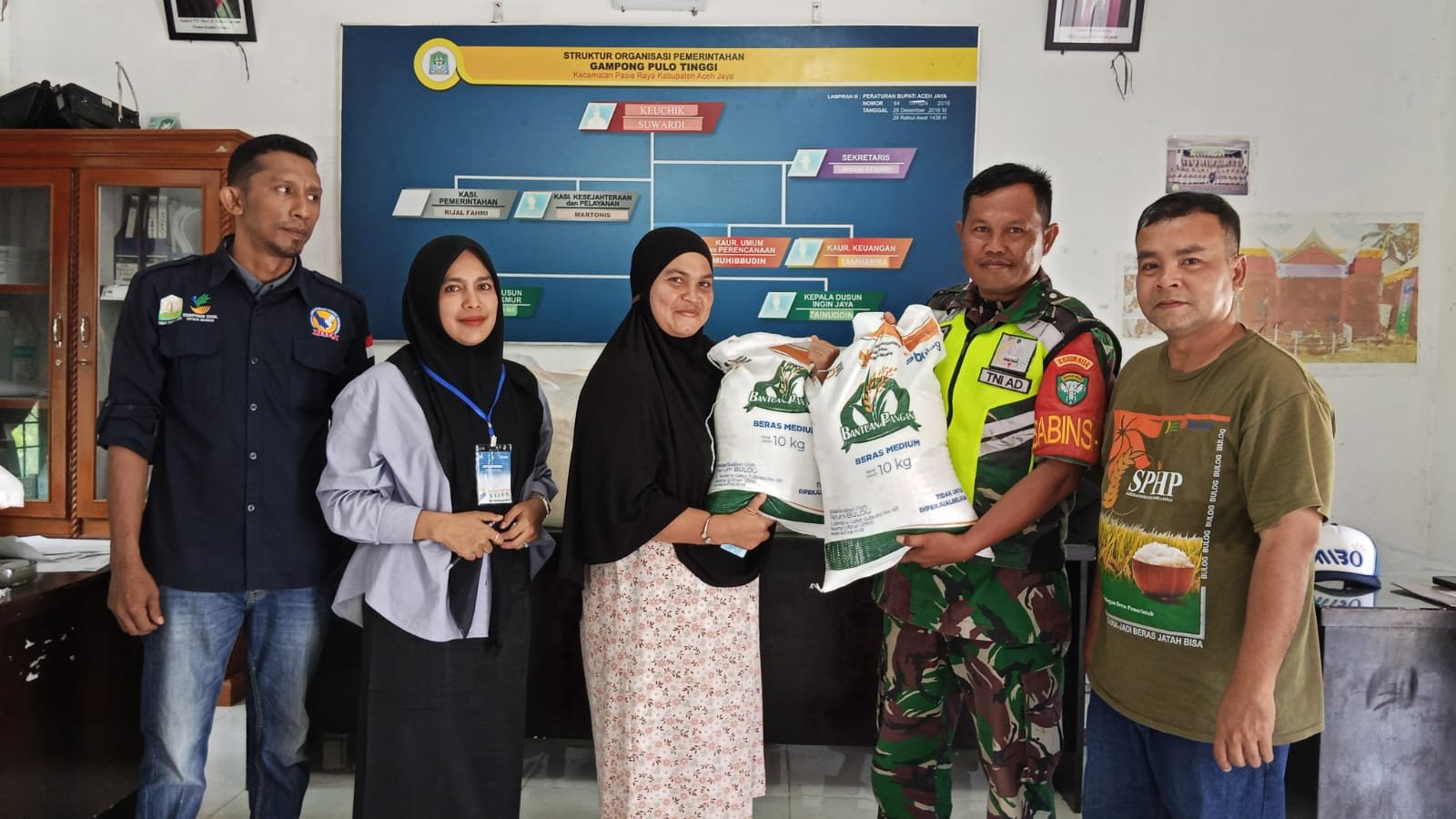 ACEH JAYA – Upaya memastikan bantuan pangan tersalurkan dengan baik kepada masyarakat yang membutuhkan terus digalakkan di Kabupaten Aceh Jaya. Babinsa Pos Ramil Pasie Raya Kodim 0114/Aceh Jaya, Sertu Samsul Hadi, bersama anggota lainnya, bahu-membahu dengan Tim dari Dinas Sosial dan Bulog, melaksanakan kegiatan pendistribusian bantuan pangan di lima desa dalam wilayah Kecamatan Pasie Raya, Senin (28/07).