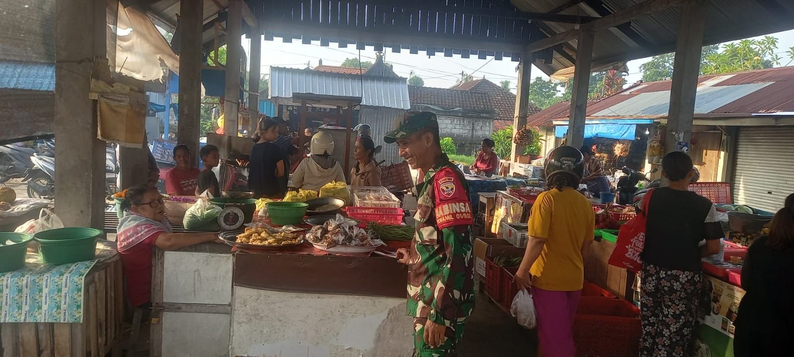 Bangli – Dalam upaya memperkuat komunikasi dan hubungan antara TNI dan masyarakat, Babinsa Desa Tamanbali, Serda I Wayan Mahendra, melaksanakan kegiatan monitoring harga bahan pokok di Pasar Tradisional Tamanbali pada Minggu, 25 Januari 2026. Kegiatan ini bertujuan untuk memastikan kenyamanan dan keamanan warga dalam beraktivitas di pasar.