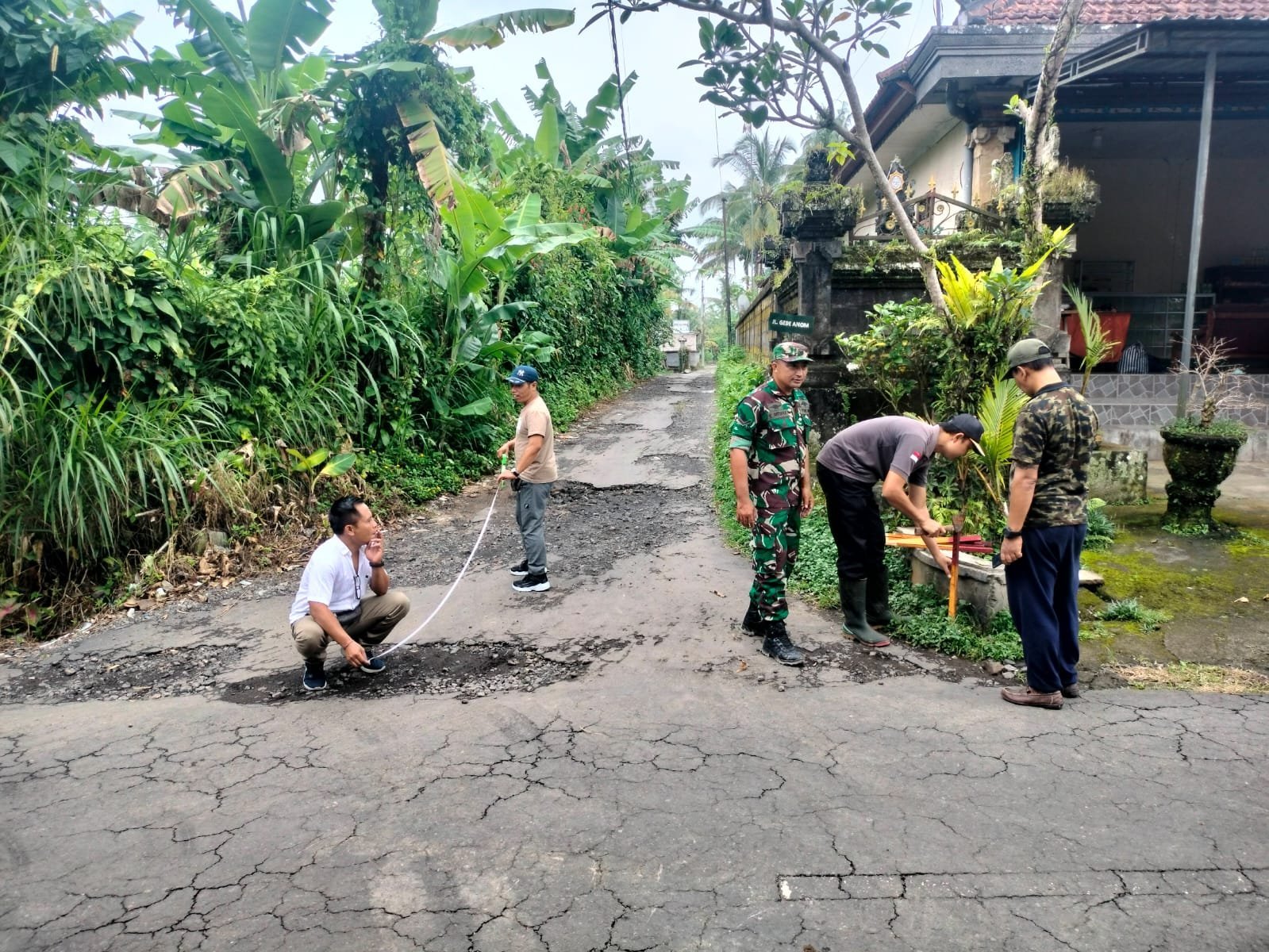 Bangli – Babinsa Desa Tembuku Koramil 1626-03/Tembuku Serda Sang Kamang Teg Redana melaksanakan kegiatan pendampingan pengukuran ulang Jalan desa di JL. Gd Anom Tegalasah Kaja, Desa Tembuku Kecamatan Tembuku Kabupaten Bangli. jumat(11/04/25)
