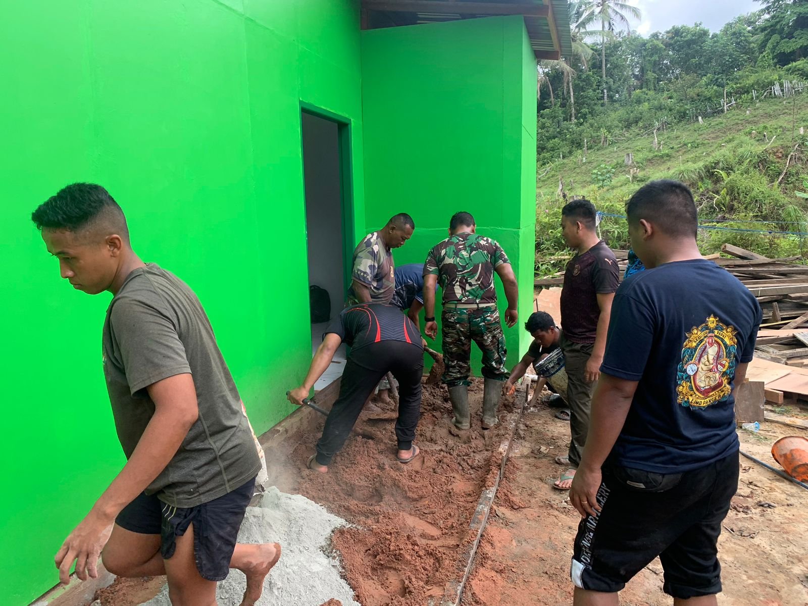 Rumah sederhana yang sebelumnya rapuh dan jauh dari kata layak itu kini bertransformasi menjadi hunian baru yang kokoh. Setelah melalui tahap penimbunan, pada Selasa (19/08) Satgas mulai melakukan pengecoran teras mengelilingi rumah. Langkah tersebut menjadi bagian akhir sebelum bangunan siap dihuni.