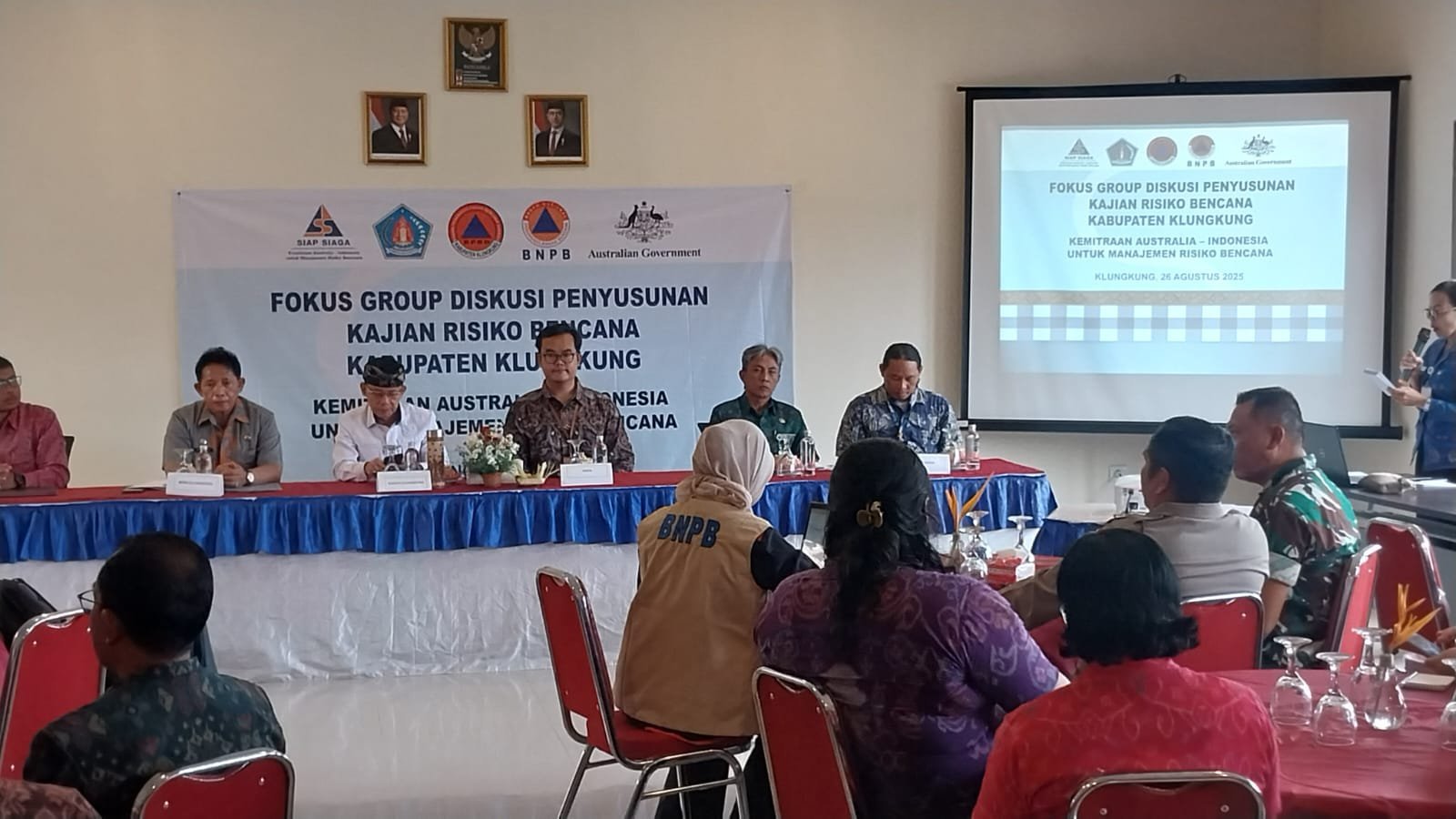 Klungkung,- Dipimpin langsung Bupati Klungkung I Made Satria, Forum Group Diskusi Lokakarya Penyusunan Kajian Resiko Bencana Kabupaten Klungkung Digelar pagi ini Selasa ( 26/08/25 ).