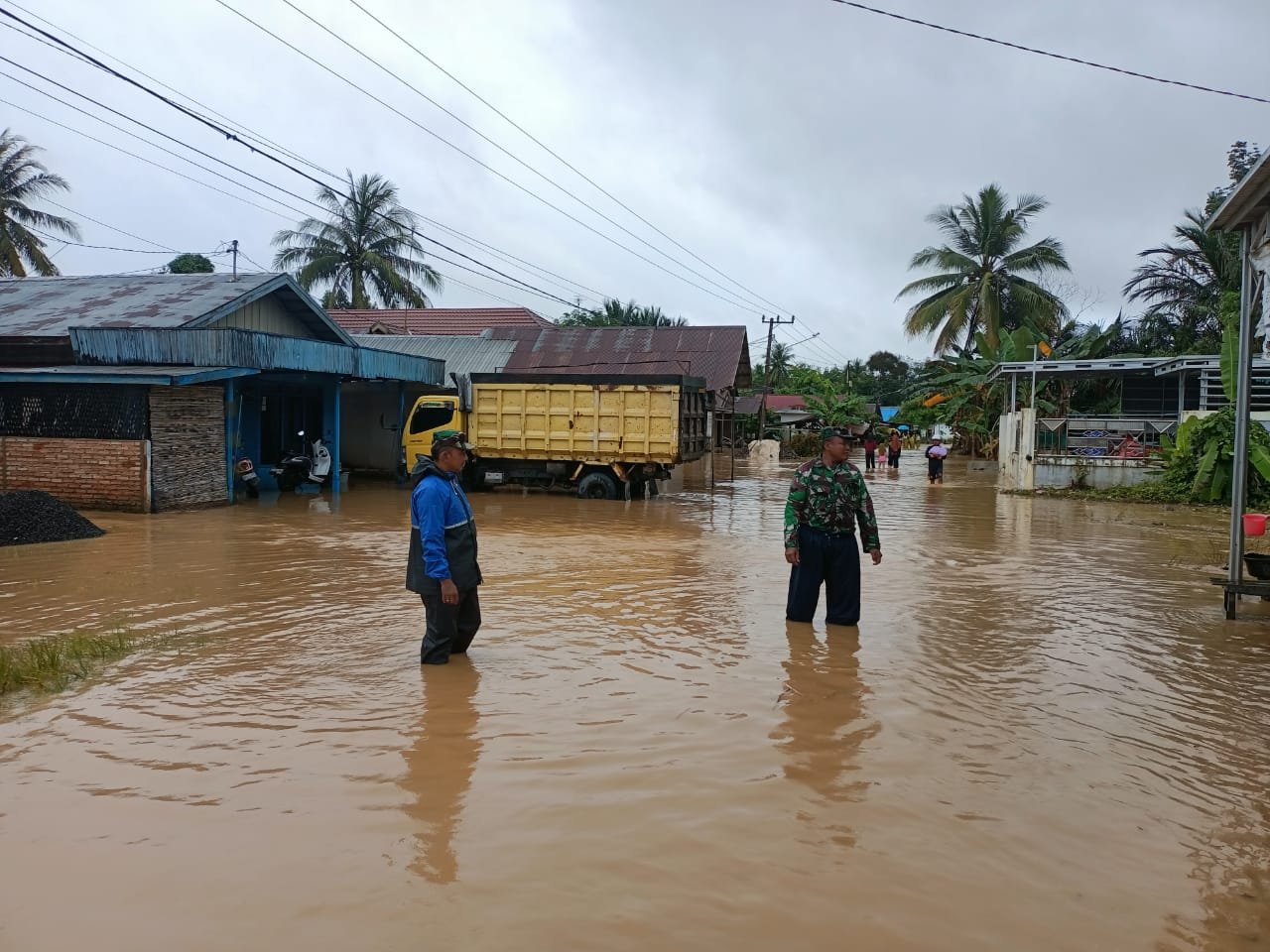 Banjir di Wilayah Binaan Terjadi, Babinsa Koramil 1010-04/Binuang Lakukan Monitoring