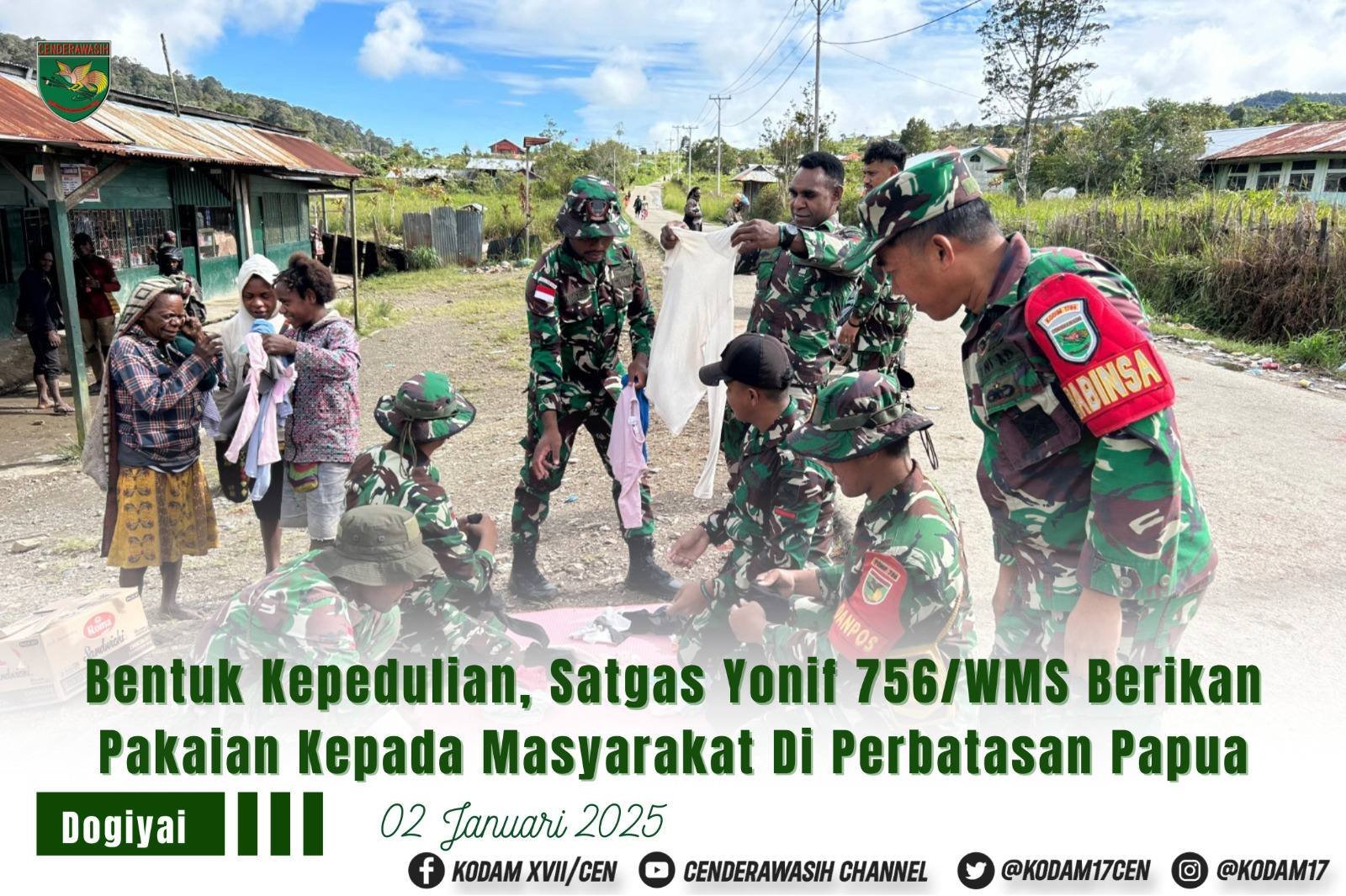 Dogiyai,- Kepedulian dan bentuk tanda cinta kasih dilakukan oleh Satgas Yonif 756/WMS melalui Pos Mapia dengan cara memberikan pakaian layak pakai kepada masyarakat, bertempat di Distrik Mapia Kabupaten Dogiyai Provinsi Papua Tengah, Kamis (02/01/2025).