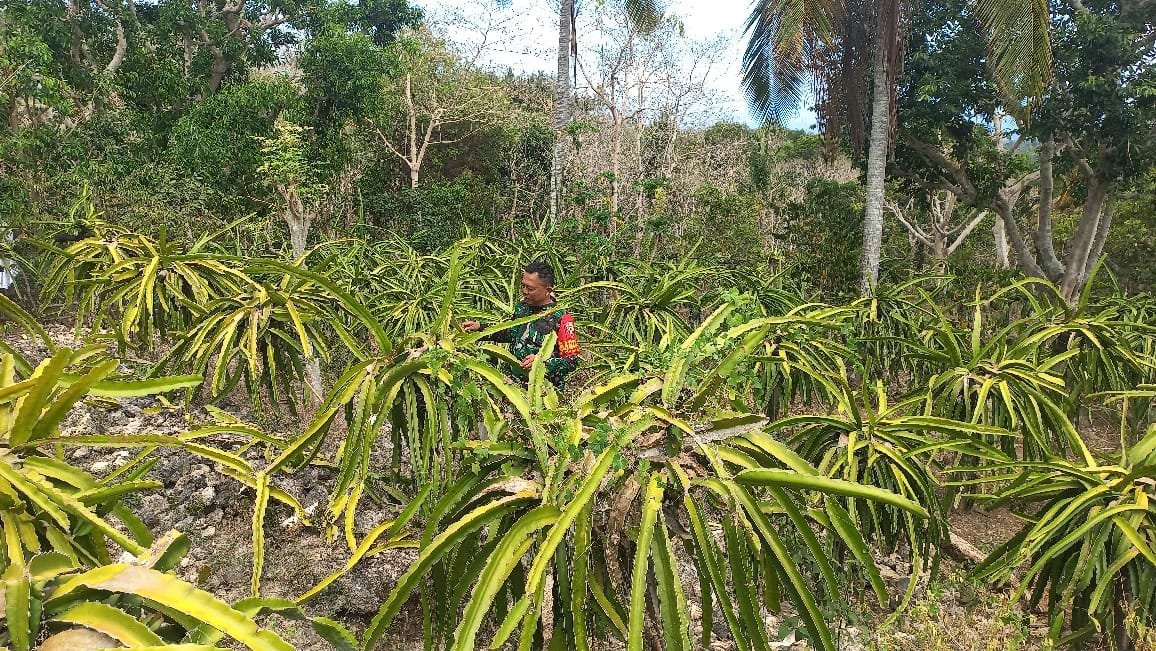 Sebagai Babinsa, kami akan terus hadir membantu dan mendampingi warga dalam berbagai sendi kehidupan, salah satunya Hanpangan budidaya buah naga ini,ucap Serda Sang Made.