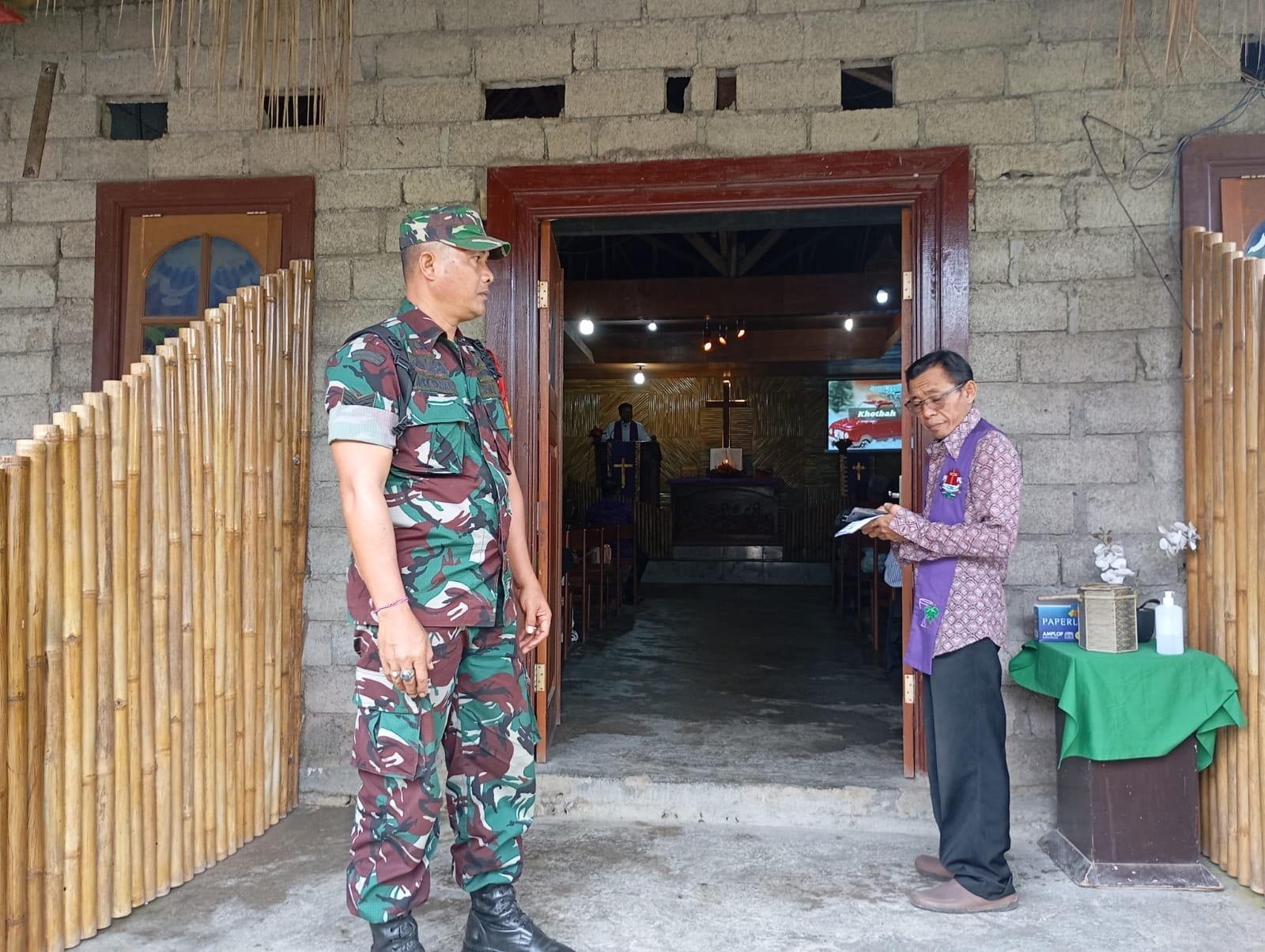 Bangli – Toleransi antara sesama pemeluk agama yang selama ini terjaga dengan baik di Kabupaten Bangli menjadi perhatian khusus yang perlu ditingkatkan bersama. Salah satu contoh untuk menjaganya, Babinsa Desa Katung Koramil 1626-04/Kintamani Serka Kadek Yudiana turun langsung amankan pelaksanaan ibadah umat Nasrani hari Minggu dengan tema menjadi gereja pembawa damai di BPI Giri suwece di desa Katung kec kintamani, Kab. Bangli Minggu (16/03/25)