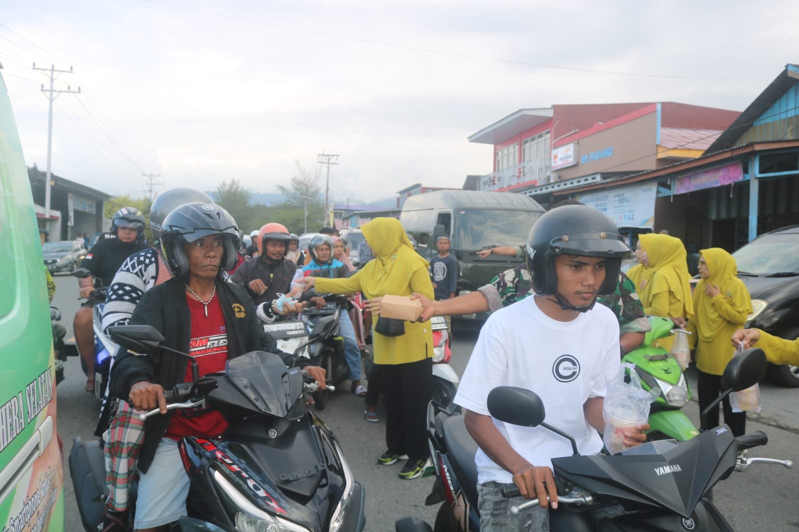 Terlihat dengan penuh humanis, para prajurit dan Persit KCK Cab 37 Kodim 1509/Labuha saling menyapa dengan masyarakat saat berlangsungnya aksi bagi-bagi takjil gratis tersebut.