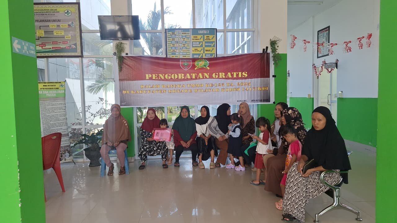Konawe – Upaya meningkatkan kesejahteraan masyarakat kembali diwujudkan Satgas TMMD ke-125 Kodim 1417/Kendari. Kali ini, Satgas menggandeng Dinas Kesehatan Kabupaten Konawe menggelar pelayanan kesehatan gratis di Puskesmas Asinua, Desa Awua Jaya, Rabu (20/8).