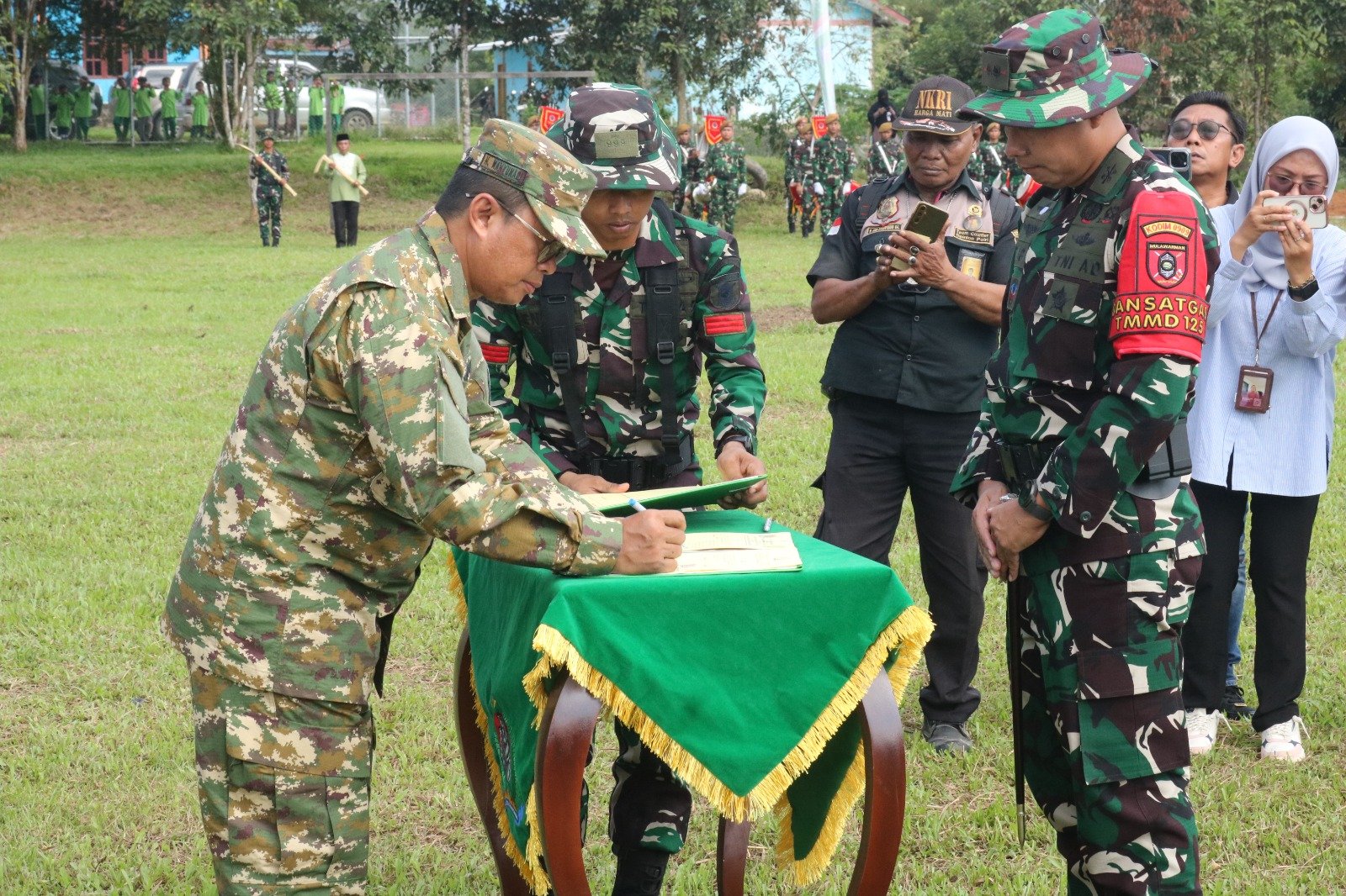 Selain itu, turut dilakukan penandatanganan naskah program TMMD, sebuah dokumen formal yang berisi rencana kerja, sasaran, dan komitmen dari seluruh pihak yang terlibat, menegaskan legalitas dan transparansi implementasi kegiatan ini. Upacara tersebut dihadiri oleh berbagai elemen, mulai dari pejabat militer, pemerintah daerah, tokoh masyarakat, hingga perwakilan penduduk setempat, menunjukkan dukungan kolektif terhadap program ini.