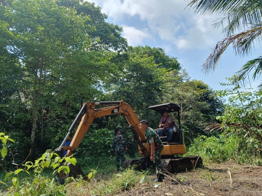 Kodim0315- Kegiatan Pra – TNI Manunggal Membangun Desa (TMMD) ke-124 TA 2025, Satgas Kodim 0315/Tanjungpinang terus memaksimalkan pengerjaan sasaran fisik, utamanya pada pembukaan akses jalan sepanjang 3KM di Desa Panggak Laut, Kecamatan Daik, Kabupaten Lingga, Senin (28/4/2025).