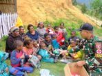 LANNY JAYA – Prajurit Satgas Yonif 614/Raja Pandhita yang bertugas di Pos Tiom (Kotis) Desa Konikme, Distrik Yugungwi, Kabupaten Lanny Jaya, Papua