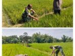 ACEH BARAT – Babinsa Koramil 03 Kaway XVI Kodim 0105 Aceh Barat, Sertu Anton, melakukan kunjungan lapangan untuk memeriksa perkembangan tanaman padi