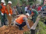 ACEH JAYA – Anggota Koramil 01/Jaya Kodim 0114/Aceh Jaya, Kopka Aris Kartiko, melaksanakan kegiatan karya bakti bersama masyarakat di Desa Serba, Kecamatan