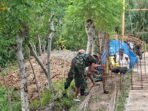 Nabire ~ Komandan Kodim 1705/Nabire, Letkol Arh Dwi Palwanto, melakukan peninjauan langsung ke lokasi pembangunan jembatan di titik ke-2, Kelurahan Girimulyo, Kabupaten