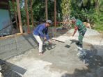 ACEH JAYA — Babinsa Posramil Pasie Raya Kodim 0114/Aceh Jaya, Sertu Syamsul, melaksanakan kegiatan karya bakti dengan membantu warga mengaduk semen untuk
