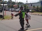 Berikan Rasa Aman, Babinsa Koramil 1801-01/Manokwari Bantu Menyeberangkan Anak-Anak Sekolah