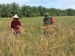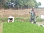 Aceh Jaya – Babinsa Pos Ramil Indra Jaya Kodim 0114/Aceh Jaya, Serka Ishak Idris, turun langsung ke sawah membantu petani, Ibu Halimah,