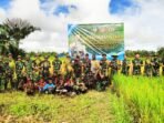 MERAUKE – Babinsa Koramil 1707-04/Kimaam Kodim 1707/Merauke Koptu Arifudin melaksanakan panen raya padi bersama personel Satgas Yonif 141/AYJP dan Masyarakat petani di