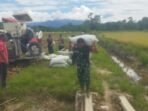 Dukung Program Ketahanan Pangan, Babinsa Koramil 03/Setia Bakti Bantu Petani Angkut Padi