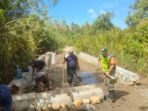 Teunom, Aceh Jaya – Babinsa Koramil 06/Teunom Kodim 0114/Aceh Jaya, Koptu Sugianto, turut serta membantu warga desa binaannya dalam kegiatan gotong royong