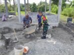 ACEH BARAT – Wujud kepedulian, Babinsa Koramil 03 Kaway XVI Kodim 0105 Abar bantu aduk semen bangun rumah warga di Desa Beuregang,