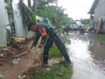 Maros – Bintara Pembina Desa (Babinsa) Sertu Muh. Yusuf Anggota Koramil 1422-04/Mandai Jajaran Kodim 1422/Maros bersama warga binaannya lakukan kerja bakti pembersihan