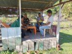 Aceh Jaya – Babinsa Koramil 04/Kureng Sabee Kodim 0114/Aceh Jaya Serda Denis melakukan komunikasi sosial (komsos) dengan petani saat beristirahat di Desa