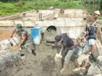 Wujudkan Peduli, Babinsa Panga Bantu Aduk Campuran Semen untuk Pengecoran Pondasi Rumah