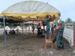 Aceh Jaya – Babinsa Koramil 01/Jaya Koramil 0114/Aceh Jaya Sertu Yulizar bergotong royong bersama warga memasang tenda untuk memperingati Maulid Nabi Muhammad