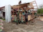 ACEH BARAT – Babinsa Koramil 03 Kaway XVI Serka Saferi Pasaribu melaksanakan karya bakti membantu aduk semen untuk ngecor lantai rumah milik