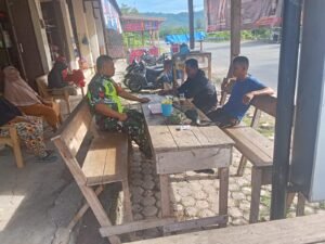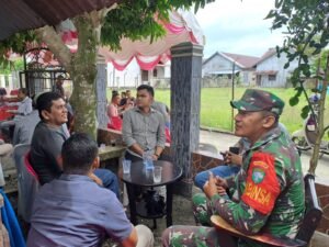 ACEH BARAT – Babinsa Posramil 12/Panton Reu Kodim 0105/Aceh Barat, Serka Julha Pasi melaksanakan kegiatan komunikasi sosial (komsos) bersama warga di wilayah