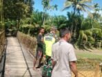 ACEH BARAT – Babinsa Koramil 01/sungaimas kodim 0105/Abar Serda M Irwandi dan beberapa warga desa terjun langsung memantau perkembangan air sungai yang