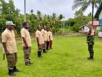 MERAUKE – Babinsa Koramil 1707-05/Ulilin, Sertu Agus dan Sertu M. Sajidin melatih anggota Linmas Kampung Selil Distrik Ulilin pada hari Selasa 10