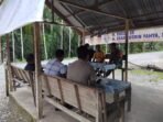 ACEH JAYA — Babinsa Posramil Pasie Raya Kodim 0114/Aceh Jaya, Kopda Bayhaqi, melaksanakan kegiatan komunikasi sosial (komsos) bersama warga desa binaan di