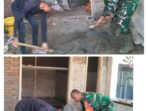 ACEH BARAT – Babinsa Koramil 03/Kaway XVI Kodim 0105/Aceh Barat, Sertu Anton, menunjukkan kepeduliannya terhadap masyarakat dengan turut membantu mengaduk semen plester