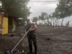 Babinsa dan Masyarakat Bersinergi Bersihkan Pantai Ampenan Selatan Pasca Banjir