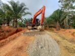 NAGAN RAYA – Di lokasi pembangunan jalan program TNI Manunggal Membangun Desa (TMMD) Ke-127 Kodim 0116/Nagan Raya, suara mesin excavator hampir tidak