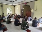 SINJAI. Personel Satuan Tugas (Satgas) TNI Manunggal Membangun Desa (TMMD) ke-123 Kodim 1424/Sinjai melaksanakan ibadah Sholat Jumat berjamaah di Masjid Baburahman, Desa