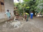 ACEH BARAT – Serka Abdul Talib, Babinsa Koramil 03/Kaway XVI Kodim 0105/Aceh Barat, turut serta membantu warga Desa Pungki, Kecamatan Kaway XVI,