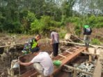 ACEH BARAT – Babinsa Koramil 03 Kaway XVI Kodim 0105 Abar Serma Suyatno membantu Warga membuat Pondasi rumah di Desa Babah Meulaboh