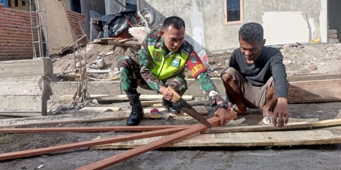 ACEH JAYA – Semangat gotong royong terus ditunjukkan oleh Babinsa Koramil 06/Teunom Kodim 0114/Aceh Jaya, Kopral Satu (Koptu) Ardika, dalam mendukung kegiatan warga
