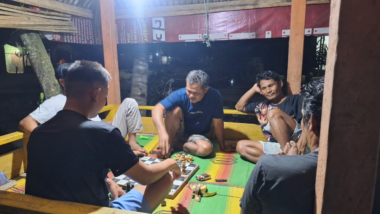 Konawe – Kebersamaan antara Satgas TMMD ke-125 Kodim 1417/Kendari dengan warga Desa Asinua, Kecamatan Asinua, Kabupaten Konawe tidak hanya terlihat di lokasi pengerjaan sasaran fisik. Pada malam hari, hubungan itu kian erat lewat aktivitas sederhana, salah satunya bermain catur.