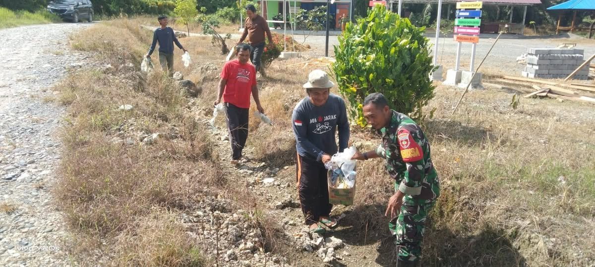 Pasangkayu – Dalam upaya mencegah banjir saat musim hujan, Babinsa Koramil 01/Pasangkayu, Sertu Ahmad Sultoni, bersama Kepala Dusun Nakula, Wayan Puja, dan warga setempat bergotong royong membersihkan parit di Dusun Nakula, Desa Martasari, Kecamatan Pedongga, Kabupaten Pasangkayu, Jumat (14/2/2025).