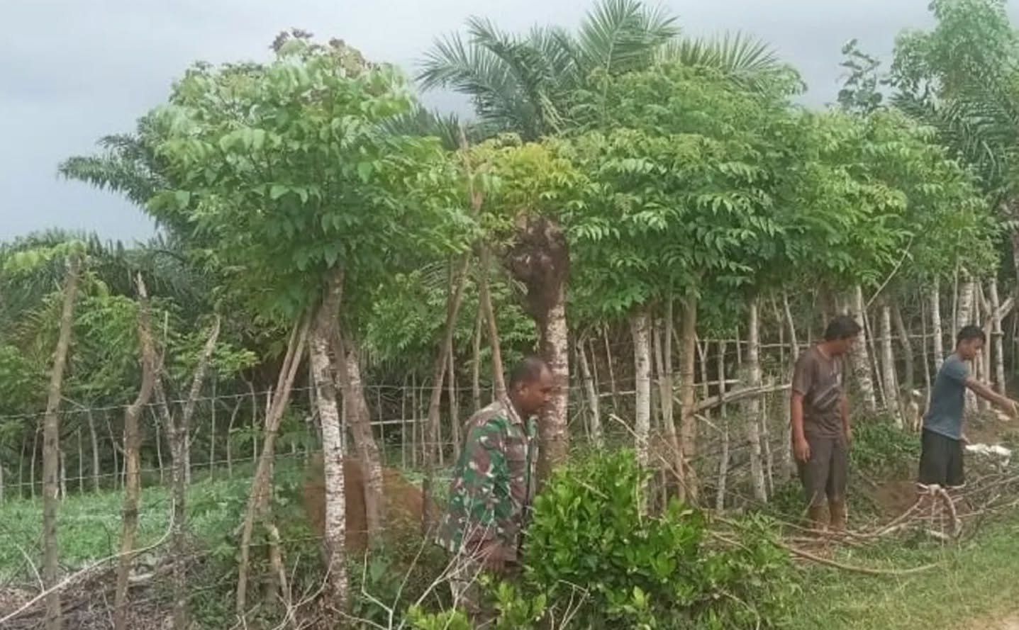 Kaur – Babinsa Koramil 408-02/KU Serka Budi Adi melaksanakan Karya bakti bersama warga membersihkan sampah, rumput dan normalisasi saluran air di Desa Tanjung Bunian, Kecamatan Lungkang Kule, Kabupaten Kaur, Minggu (13/4/25).