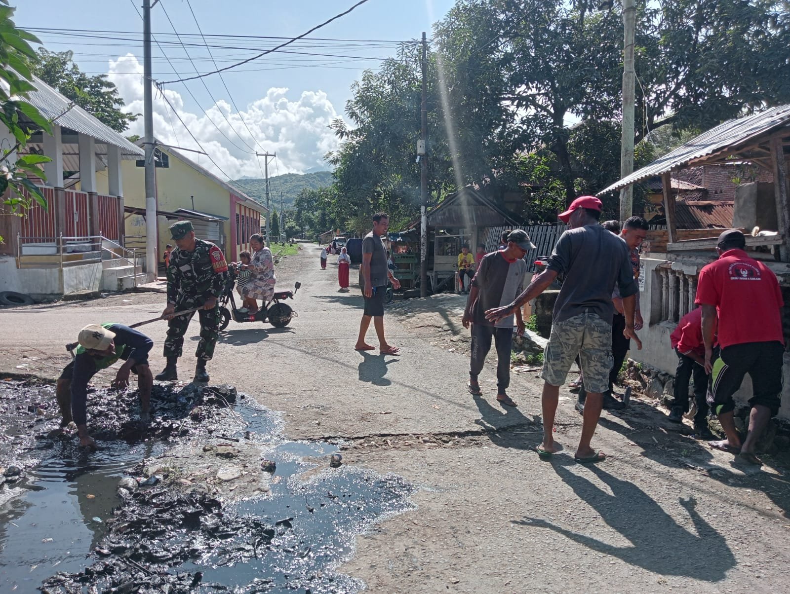 Bima, 25 Februari 2025 – Dalam upaya mencegah penyebaran penyakit Demam Berdarah Dengue (DBD), Babinsa Desa Nisa, Sertu Busyran, anggota Koramil 1608-04/Woha, bersama pemerintah Kecamatan Woha dan masyarakat setempat, menggelar gotong royong membersihkan saluran air yang tersumbat. Kegiatan yang berlangsung di Desa Nisa, Kecamatan Woha, Kabupaten Bima ini bertujuan untuk menghilangkan genangan air yang berpotensi menjadi tempat berkembang biaknya nyamuk Aedes aegypti, penyebab DBD.
