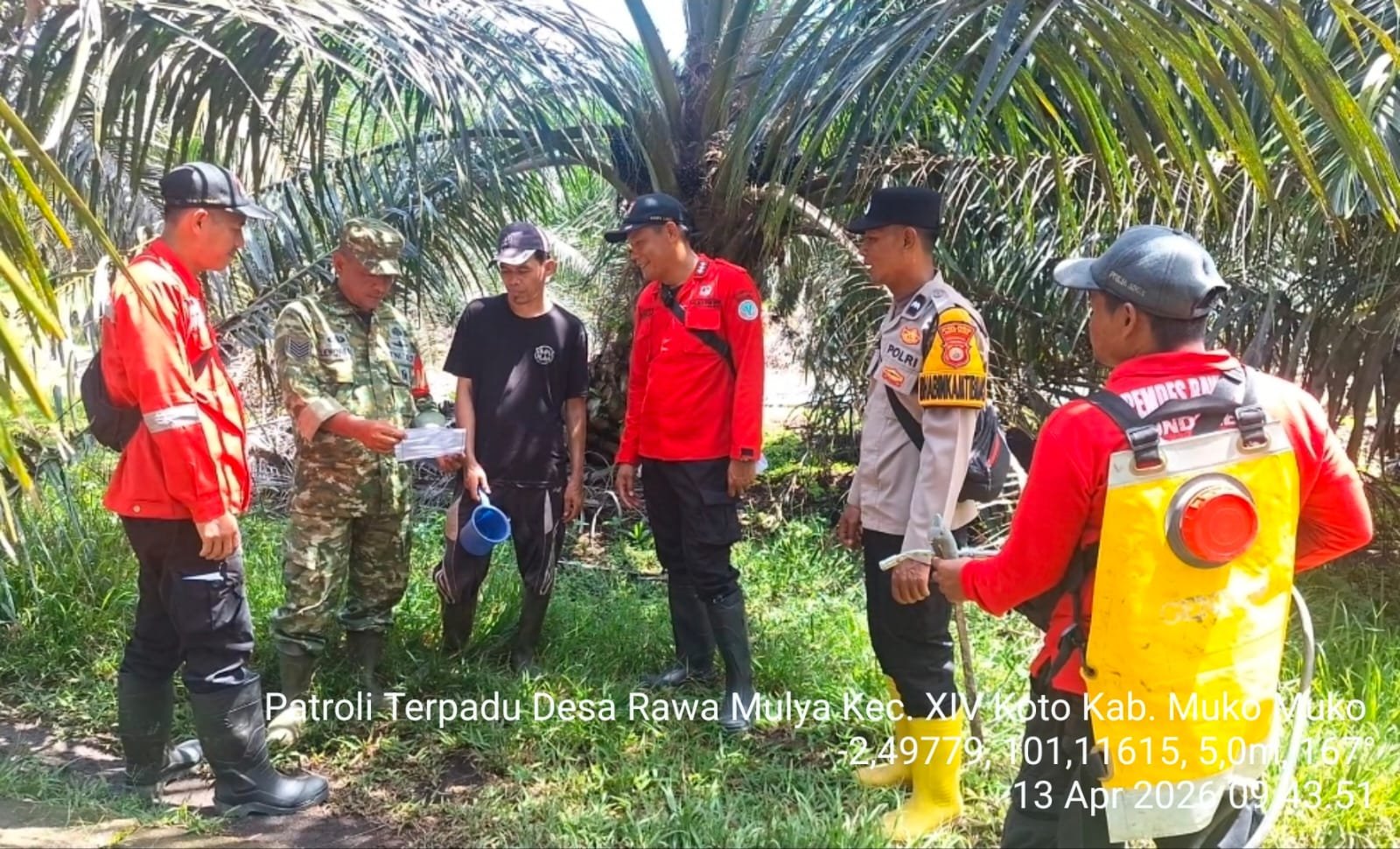 Pendim 0428/MukoMuko – Guna menjaga keamanan lingkungan dan mencegah terjadinya kebakaran hutan dan lahan (Karhutla), Kegiatan ini dilaksanakan di Desa Rawa Mulya Kec. XIV Koto Kab. MukoMuko, Senin(13/04/2026).